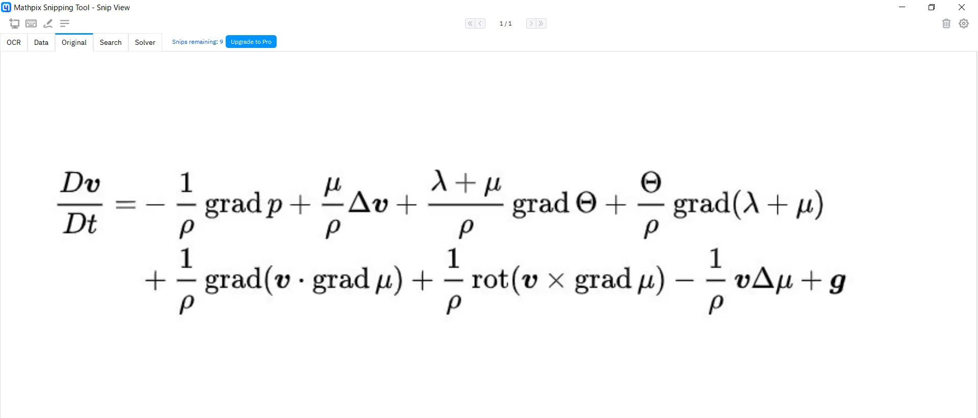 すると上のように,マウスで書いたような読みにくい文字でも(一部誤変換はありますが)かなりよい精度で,数式として読み取ってくれます.(無料版では1カ月に10回.それ以上は有料のMathpix Proに申し込む必要があります.)