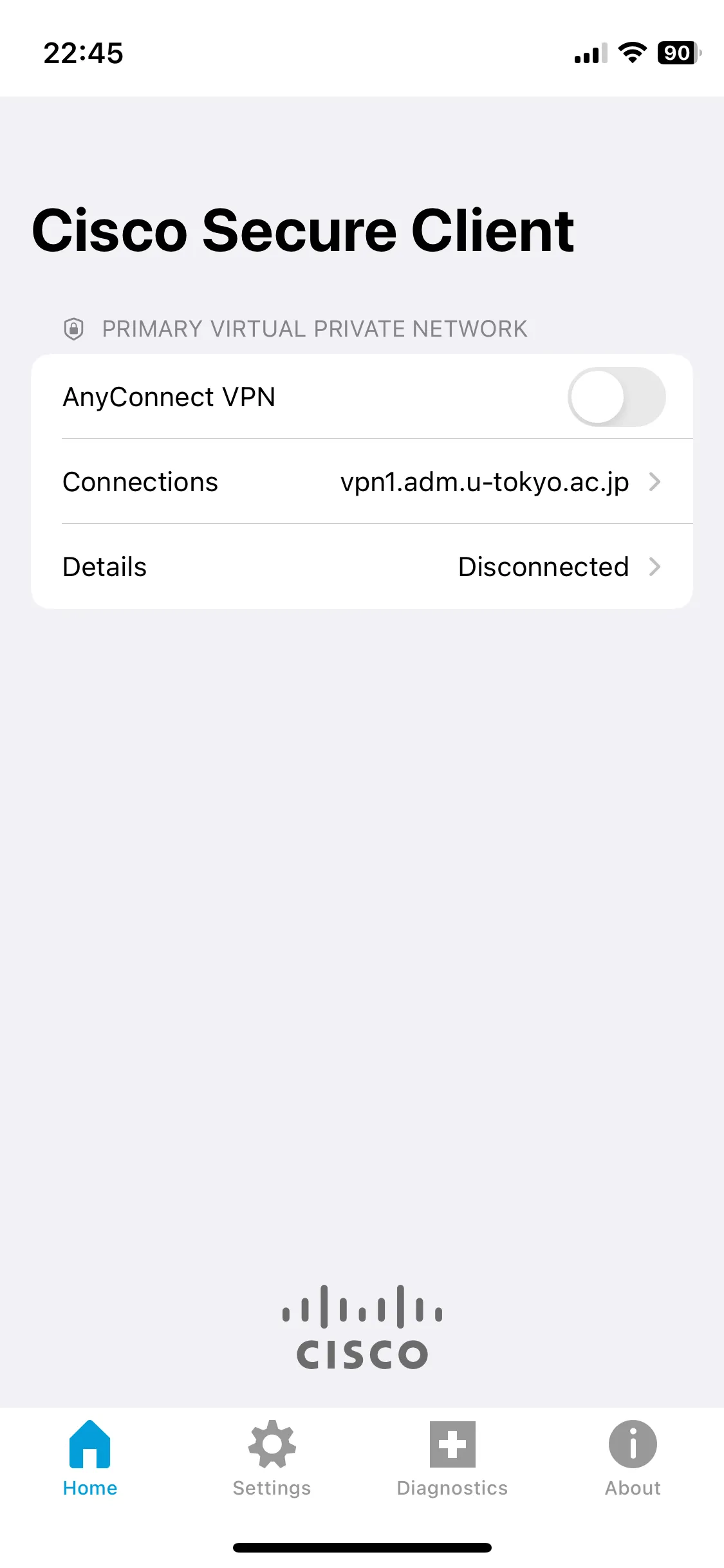 Step G: Your device is connected to the UTokyo VPN if the “Details” screen shows “Connected” as shown below.