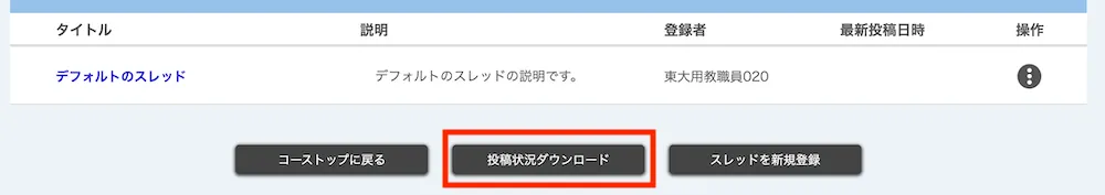 掲示板機能では,投稿状況をダウンロードすることができます.ダウンロード機能には,以下の2種類があります.