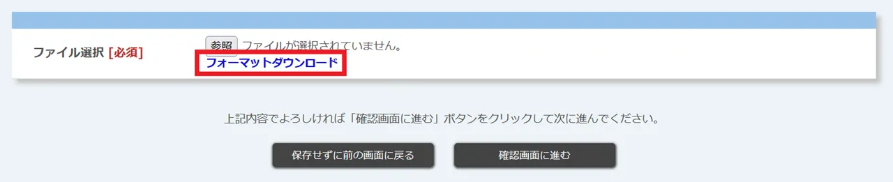 4. 「フォーマットダウンロード」を押して,入力に使用するExcelファイルをダウンロードしてください.