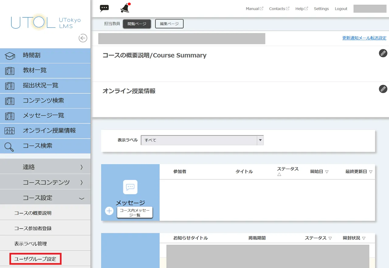 UTOLでユーザグループ機能を利用する(教員・TA向け)